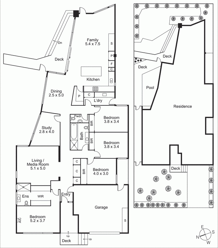 Beyond the façade is a clever and surprisingly large and flexible floor plan - I can see a family living here from the time they are starting out as a couple, through children (both younger and older) until ready to leave home. A central hallway forms a curved spine, with well separated bedrooms at the front and an informal living areas and entertainer's kitchen at the rear wrapping around the black-tiled plunge pool, deck and lawn area.